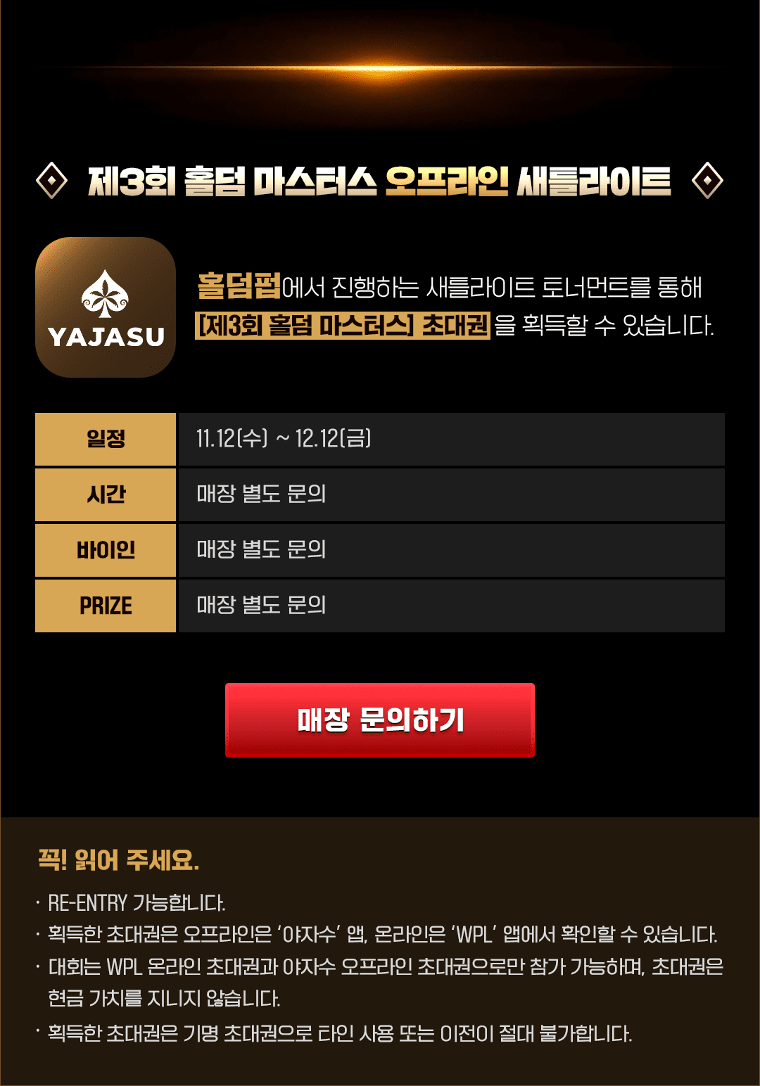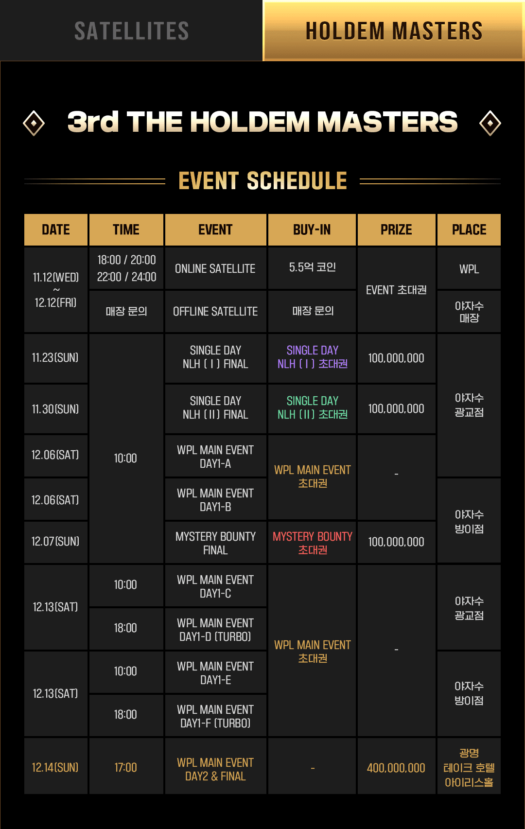 holdem masters Title Sponsor WPL 400,000,000 Total Guaranteed 야자수 방이점/광교점